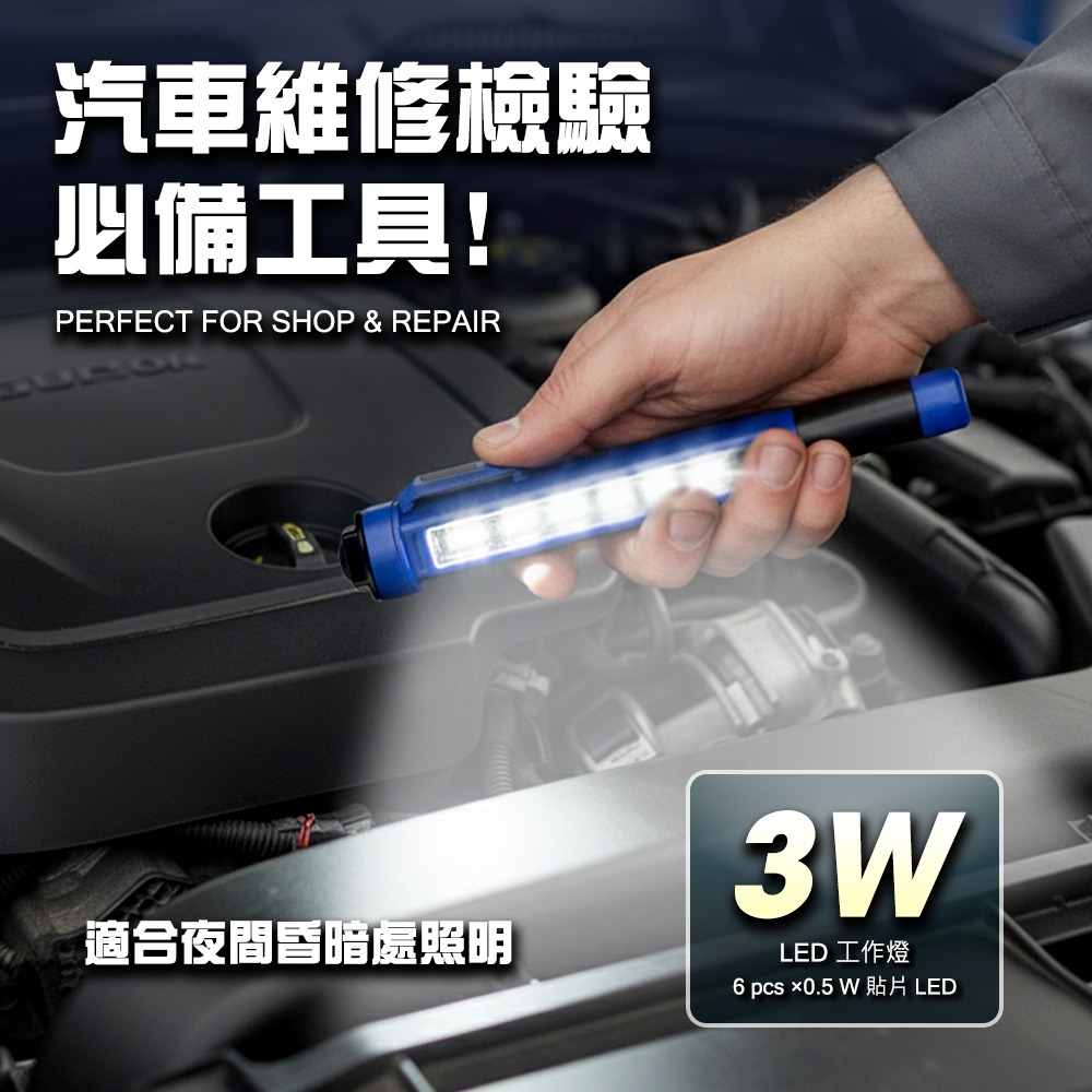 提供 3W輕巧款 與 8W高亮款 兩種規格,滿足不同照明需求,讓你不論在車庫、工地、露營地都能擁有穩定亮度。