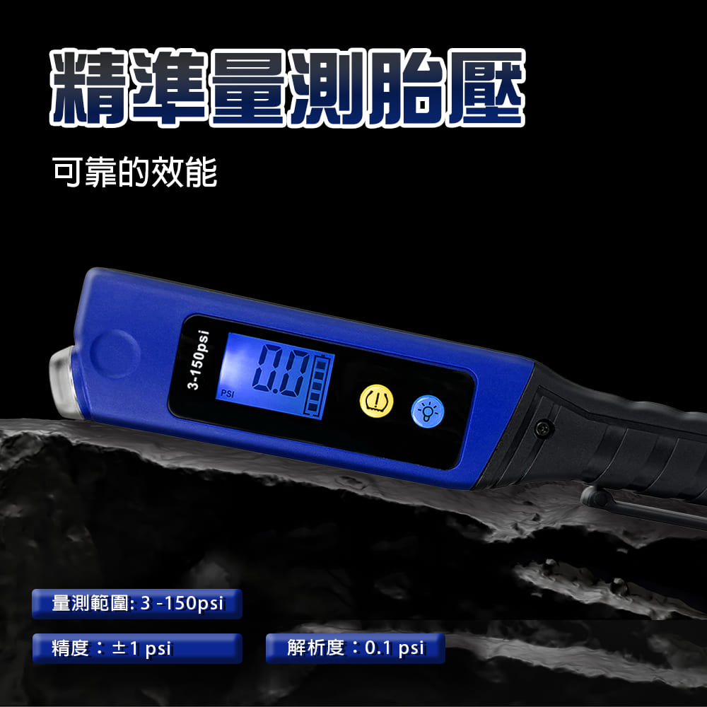 精準數位胎壓偵測:支援 PSI、BAR、KPa、kg/cm² 四單位,適用各類輪胎